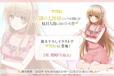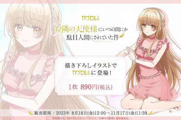 株式会社インクルーズ(東京都渋谷区、代表取締役社長 山﨑 健司)が企画・運営するフィジカルグッズのオンラインくじ「カワセルくじ」にて、8月18日(金)より、TVアニメ『お隣の天使様にいつの間にか駄目人間にされていた件』のくじが発売開始になりましたことをご報告させていただきます。