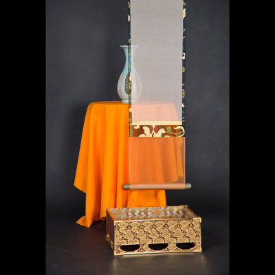 専門は中国から渡来された織物ですが、茶の湯では「名物裂」と呼ばれています。茶の湯では大変貴重で茶人が好んだ裂に自分の名前をつけることもあります。茶道具は中国の物を最上としています。中国人から学んだ「納紗繍」を日本では「竹屋町」と呼び、今は私が素材の紗を織り独自の技法で「竹屋町」を制作しています。更紗の作品も出品します。