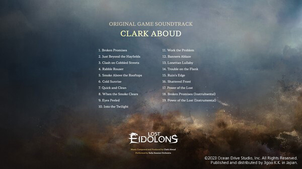 英国アカデミー賞ゲーム部門で受賞歴のあるClark Aboud氏作曲による『ロスト アイドロン』のオリジナルサウンドトラック。この80分のコンピレーションアルバムで『ロスト アイドロン』の音楽に浸り、エデンの旅の切ない瞬間を追体験しよう。