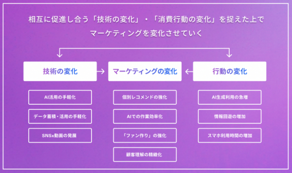 マーケティングの現場では「技術や消費行動の変化を捉えた上で、それに合わせてマーケティングを変化させる必要がある」と私たちは考えています。