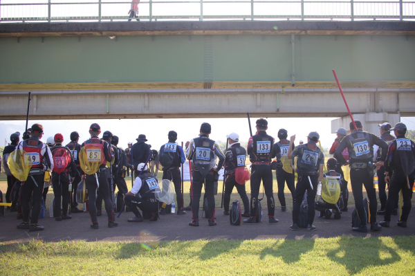 先日の台風時に上流のダムが放水した影響で水が少し濁ってはいたものの、これは悪くない状況。お昼12時までの4時間ほどの釣りで平均20~30尾、さらに40尾台、50尾台へと数を伸ばす選手も出るのでは…と予想された。五松橋の下で午前7時15分から行われた開会式のあと、オトリ3尾を受け取った選手は思い思いの場所へと散らばる。徒歩での移動が原則でエリアが広範囲なのをものともせず、若きパワーを発揮してダッシュや小走りで釣り場へ向かう選手も見受けられた。