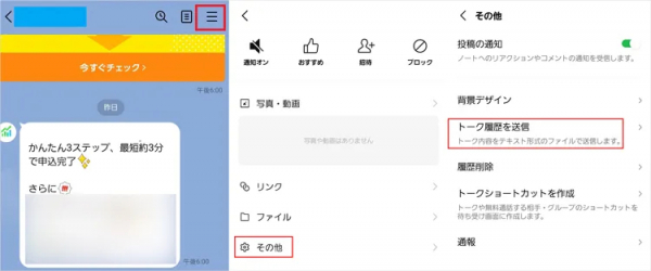 方法2:相手にライントーク履歴のテキストファイルを送ってもらう