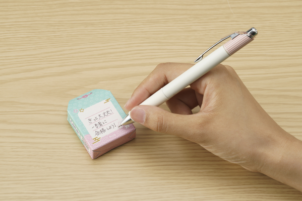 お守り型パッケージには応援メッセージを書き込めるメッセージ欄があり、プレゼントとしてはもちろん、受験生ご自身の願掛け用としてもご使用いただけます。メーカー希望小売価格は308円(税込)です。