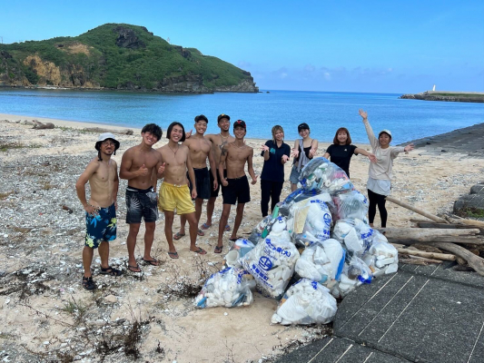 当日は天候にも恵まれ、アクトプロが運営する「与那国コールセンター」や日本最西端のカフェ&バー「与那国むんぶてらす」のスタッフら10人がビーチに漂着していたプラスチック、周辺に捨てられたゴミや枯れ葉を拾い集め、美化活動に取り組みました。