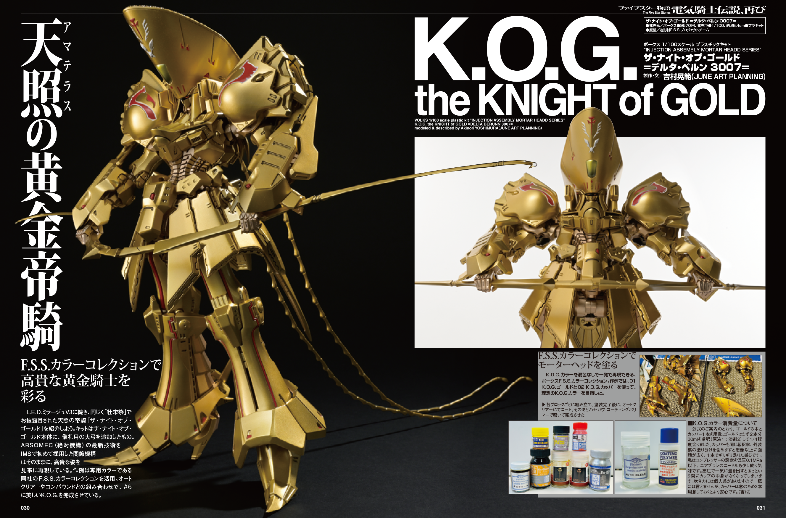 また、吉村晃範が製作した「ザ・ナイト・オブ・ゴールド =デルタ・ベルン 3007=」では、専用カラーであるF.S.S.カラーコレクションを活用し、オートクリアーやコンパウンドとの組み合わせで美しい「K.O.G.」を完成させております。