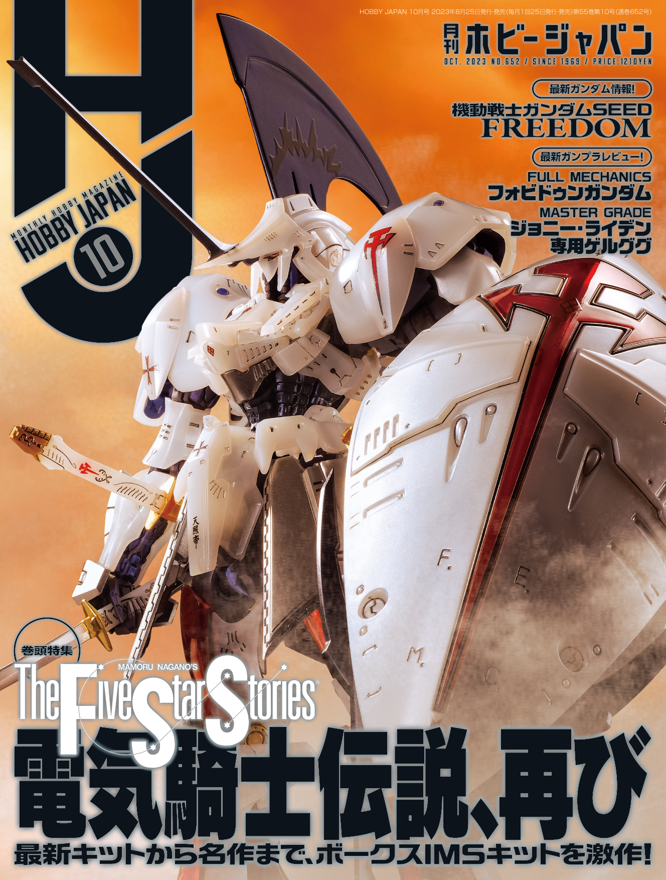 8月24日(木)発売「月刊ホビージャパン 2023年10月号」の特集は『ファイブスター物語』!「月刊ホビージャパン 2022年7月号」以来の特集となる『ファイブスター物語』では、2体の最新キットをはじめ、数々のモーターヘッド作例を掲載いたします!