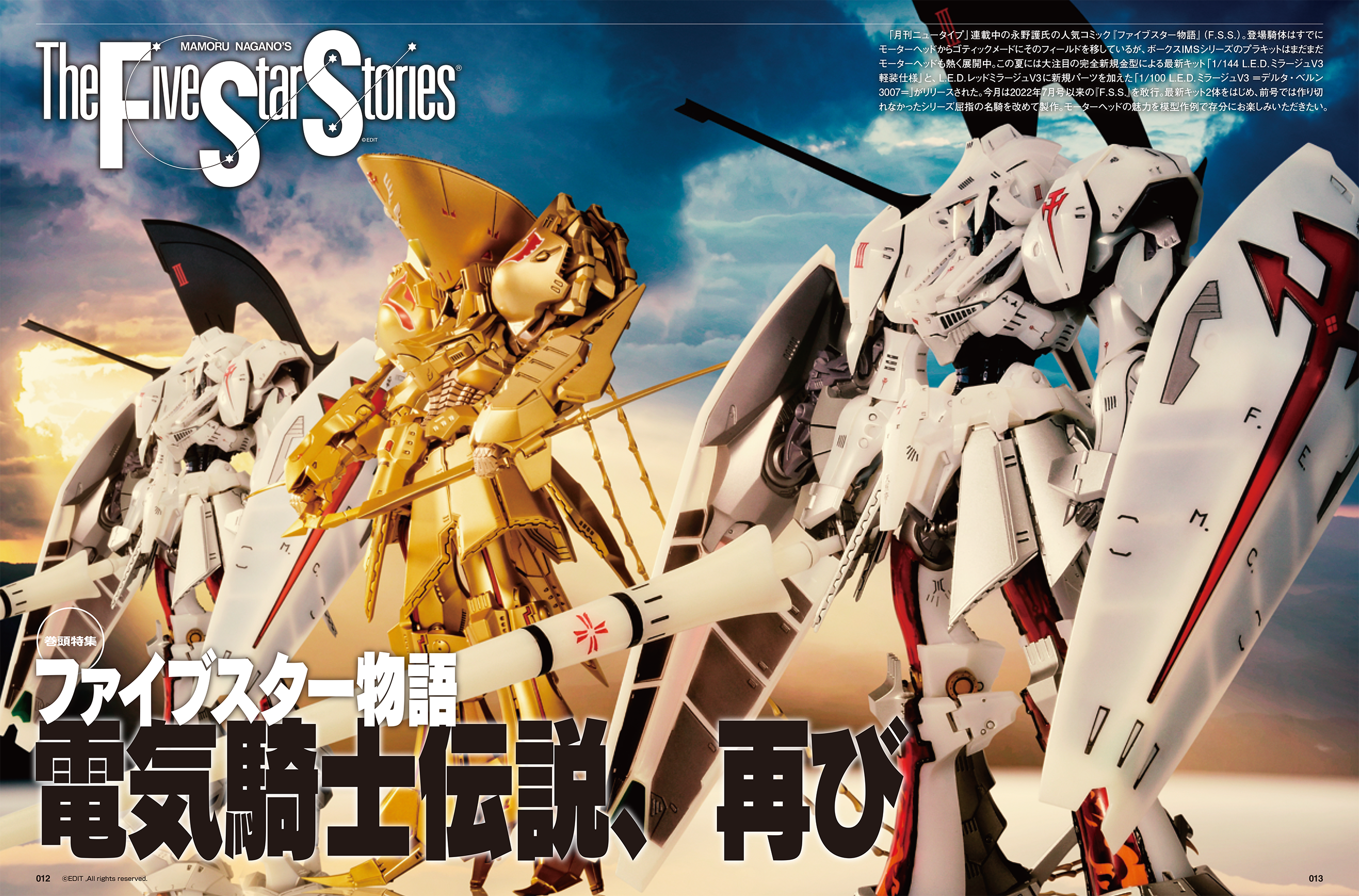 「月刊ホビージャパン 2023年10月号」の巻頭特集は、「月刊ホビージャパン 2022年7月号」以来となる『ファイブスター物語』大特集!最新キット「1/144 L.E.D.ミラージュV3 軽装仕様」「1/100 L.E.D.ミラージュV3 =デルタ・ベルン3007=」の紹介に加え、前回の特集では作り切れなかったシリーズ屈指の名騎を改めて製作いたします。
