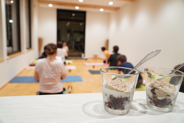 ヨガと美容鍼の施術後は、克奈子先生による「小豆と糀とハトムギ」を使ったオリジナルスイーツを頂きました。