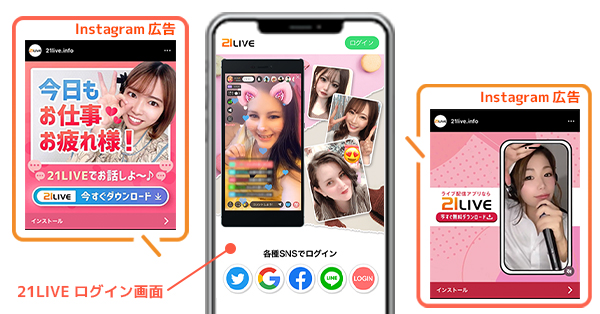 ▼21LIVE アプリ版のインストールはこちら
