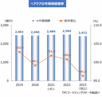 ◆2023年については、2022年比2.1%減の4,776億円で推移する見込み。育毛商品については、性別を問わず、通販系ブランドを中心に引き続きニーズが拡大するとみられるものの、それ以外の分野については市場が成熟期を迎えていることから、いずれも0~5%程度の減少推移が予想される。市場成長率が頭打ちとなっている現状、今後は競合との差別化につながるユニークなコンセプトの提案や、未開拓ユーザーへのアプローチが市場拡大のための重要なポイントとなる。