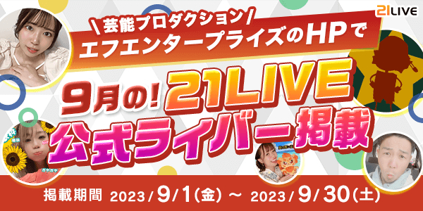 9月1日(金)より、21LIVEの9月度公式ライバーが芸能プロダクション・株式会社エフエンタープライズ(F.Enterpris)のホームページに掲載されています!(https://fenterprise.jp/)