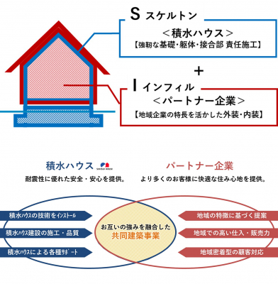 そして「インフィル」=「I」部分の外装や内装は、パートナー企業が担い、地域での高い土地仕入れ力・販売力を活かし、地域特性に沿った提案を行うなど地域密着型の顧客対応を可能とします。