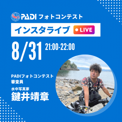スクーバダイビングの教育機関であるPADI(株式会社パディ・アジア・パシフィック・ジャパン、本社:東京都中央区 代表取締役会長:中野龍男)は、現在作品募集中の「PADIフォトコンテスト2023」の関連イベントとして、審査員を務める水中写真家・鍵井靖章さんのInstagram Liveを8月31日(木)21時~22時で開催いたします。