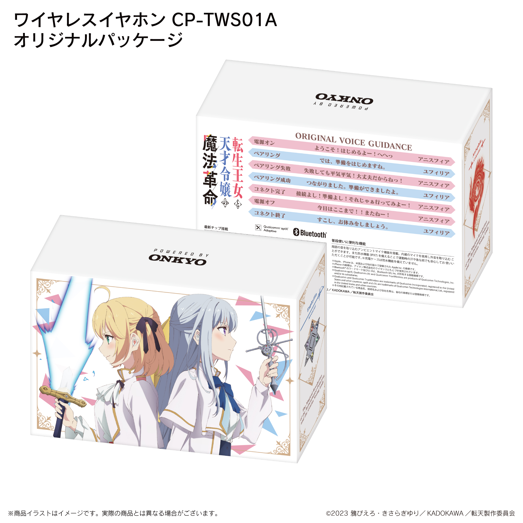 オンキヨー株式会社(所在地:大阪府大阪市、代表取締役社長:大朏 宗徳)は、完全ワイヤレスイヤホン「CP-TWS01A」と、TVアニメ 『転生王女と天才令嬢の魔法革命※1』とのボイス入りコラボレーションモデルを予約販売致します。