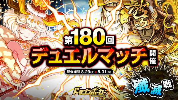 株式会社アソビズム(本社:東京都千代田区、代表取締役:大手智之)は、App Store・Google Playにて好評配信中のリアルタイム合体カードバトル『ドラゴンポーカー』で、2023年8月29日(火)より「第180回デュエルマッチ本戦」を開催いたします。