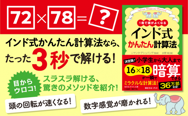 株式会社三笠書房(東京都千代田区/代表取締役:押鐘太陽 http://www.mikasashobo.co.jp )は、2023年8月3日に『インド式かんたん計算法』監修ニヤンタ・デシュパンデ、著者水野純が、キンドル電子書籍で配信開始いたしました。