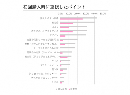 赤ちゃんが大人と同じテーブルで食事をするのに便利なハイチェアは、子育て世帯にとって関心の高い商材と言える。そこで株式会社コズレは子育て中のママに焦点をあて、ベビー用ハイチェアの購入動向について調査・分析を実施した。