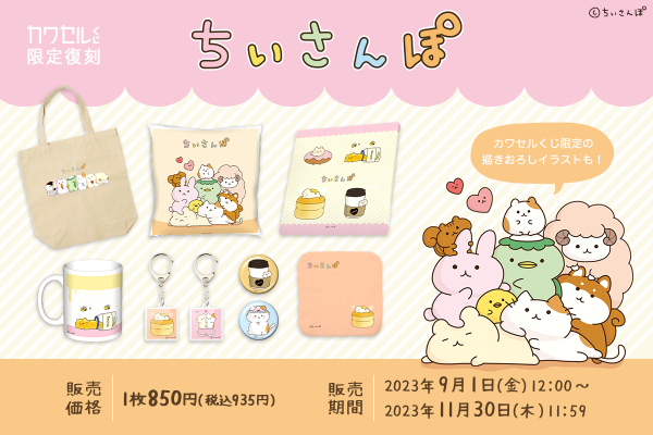 株式会社インクルーズ(東京都渋谷区、代表取締役社長 山﨑 健司)が企画・運営するフィジカルグッズのオンラインくじ「カワセルくじ」にて、9月1日(金)より、「ちいさんぽ」のくじが【復刻再販】開始になりましたことをご報告させていただきます。