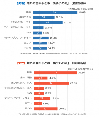 ◆男女別:婚外恋愛の「出会いの場」