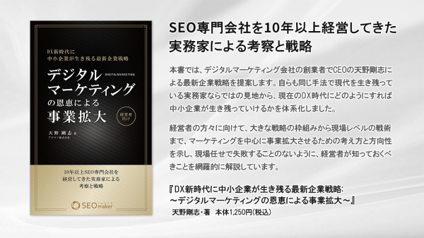 アドマノ株式会社(本社:東京都豊島区、代表取締役:天野 剛志)が提供するSEOメディア「東京SEOメーカー」は、2023年9月1日(金)に、「DX新時代に中小企業が生き残る最新企業戦略~デジタルマーケティングの恩恵による事業拡大~」を刊行しました。