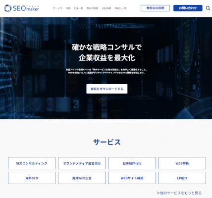 東京SEOメーカー(https://www.switchitmaker2.com/)は、検索エンジン黎明期から様々な観点でSEOを中心にWebを研究し続けていた代表が2012年に創業。長年にわたるアルゴリズム研究と検証で独自の上位表示ノウハウを蓄積しつつ、無駄を省いた社内システムを構築することでクオリティの高いサービスを実現しました。