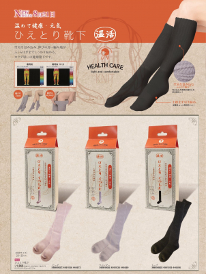ひえとり靴下 ピーチ/ラベンダー/トープの3種 価格 各1,363円(税込 1,499円)