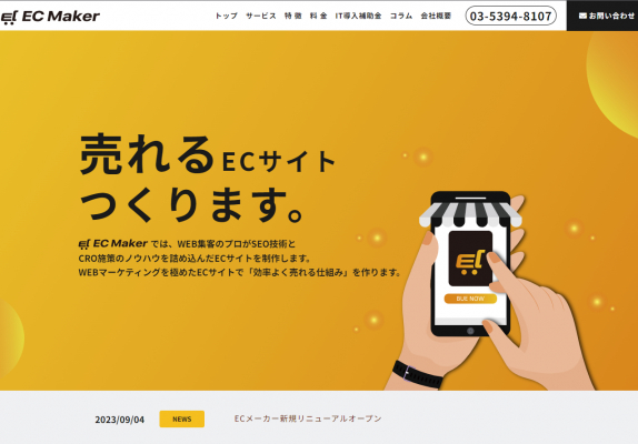 今回は、高いSEOの技術力を活かして、ECサイト構築に特化したサービス「ECメーカー」を新しくオープンいたしました。是非、ECサイト制作をご予定の方は、ご依頼ください。