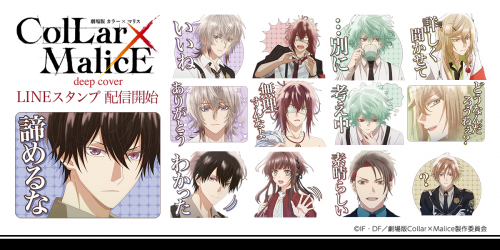 「劇場版 Collar×Malice-deep cover-」の初となるLINEスタンプがインクルーズより配信開始!先行で配信中のLINE着せかえと一緒に「劇場版 Collar×Malice-deep cover-」の世界観をお楽しみください。