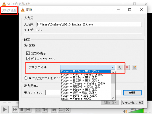 方法1.VLC Media PlayerでMOVからMP4へ変換