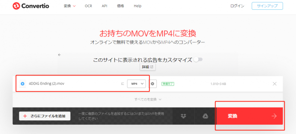 方法2.オンラインでMOVファイルをMP4に無料変換