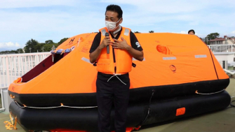 また、ラ・ナシカ三保の松原は津波発生時の避難先に指定されていることもあり、今回の訓練には消防署や社会福祉協議会、地域住民の方にもご参加頂き、館内の様子や避難経路、救命筏のデモンストレーションを見て頂きました。
