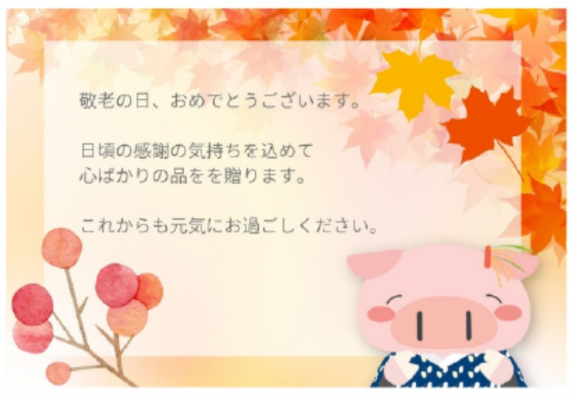 シニアにも人気のこれら商品をセットにした『敬老の日 元氣BOX』は、「敬老の日」に向けたギフト商品として、9月1日より発送を開始し、50個限定で、なくなり次第終了となります。「米の娘ぶた」の公式キャラクターである「米の娘ちゃん」のデザイン入りギフトカードも用意し、無料でお付けできます。