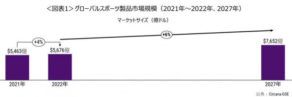 グローバルにおけるスポーツ製品市場は2027年には112兆円に