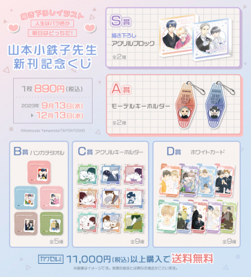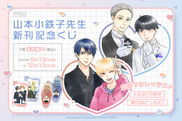 大洋図書×株式会社インクルーズが贈る「カワセルくじ 乙女部」最新作は、山本小鉄子先生の新刊発売を記念して、今までの作品を落とし込んだ「山本小鉄子先生 新刊記念」くじです。