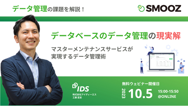 株式会社アイディーエス(本社:東京都港区、代表取締役:中野 貴志、以下アイディーエス)は、2023年10月5日に、「データベースのデータ管理の現実解 マスターメンテナンスサービスが実現するデータ管理術」に関する無料ウェビナーを開催いたします。
