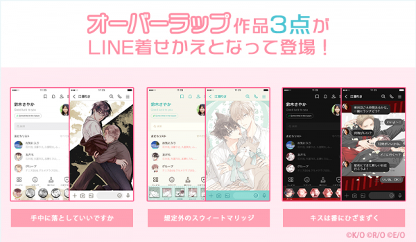 オーバーラップ×株式会社インクルーズが贈るLINE着せかえ最新作は、BL ウェブマガジン「LiQulle(リキューレ)」連載の3作品です。