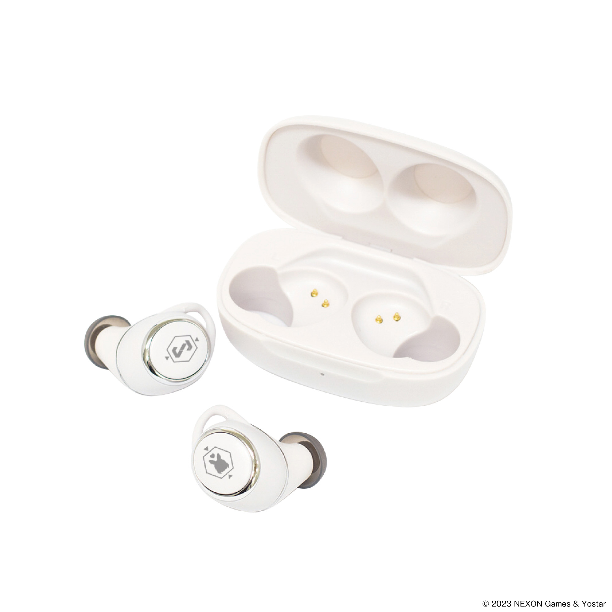 本コラボレーションモデルは、充電ケース天面にタイトルロゴを印刷、左右ハウジングに「アロナ」のシンボルと「シッテムの箱」のロゴをレーザー加工し、起動時にLED点灯します。音声ガイダンスはシッテムの箱のOS並び高性能AIこと、「アロナ」の録り下ろしボイスを搭載。電源オンやオフ、ペアリング時やタップ音等、計11ワードの内容となっており、パッケージのイラストは、やつは先生(@lcr828)による描き下ろしです。