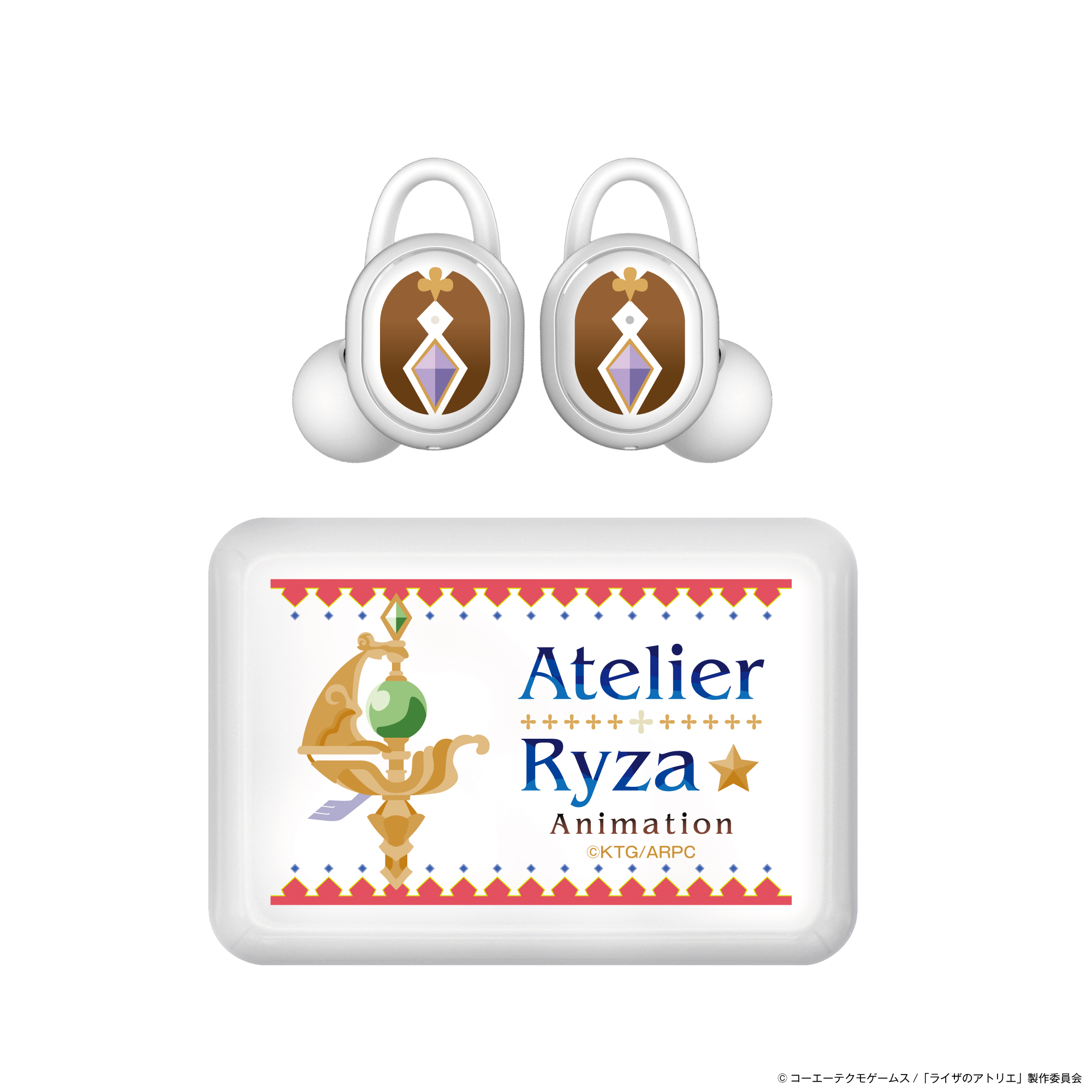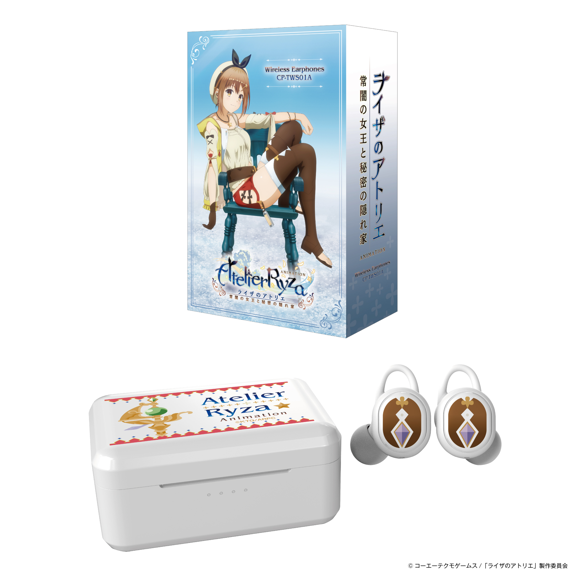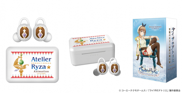 本コラボレーションモデルは、本体にキャラクターの象徴となるマークを左右イヤホンに、充電ケースは白をベースに作品のタイトルを世界観に合わせデザイン、普段使いのできるデザインとなっており、また貴重な内蔵ボイスは本作品キャラクター「ライザ(CV:のぐちゆり)」完全録り下ろしボイス(全7ワード)となっております。尚、パッケージには、本コラボレーションモデルのために描き下ろされたイラストを採用しております。