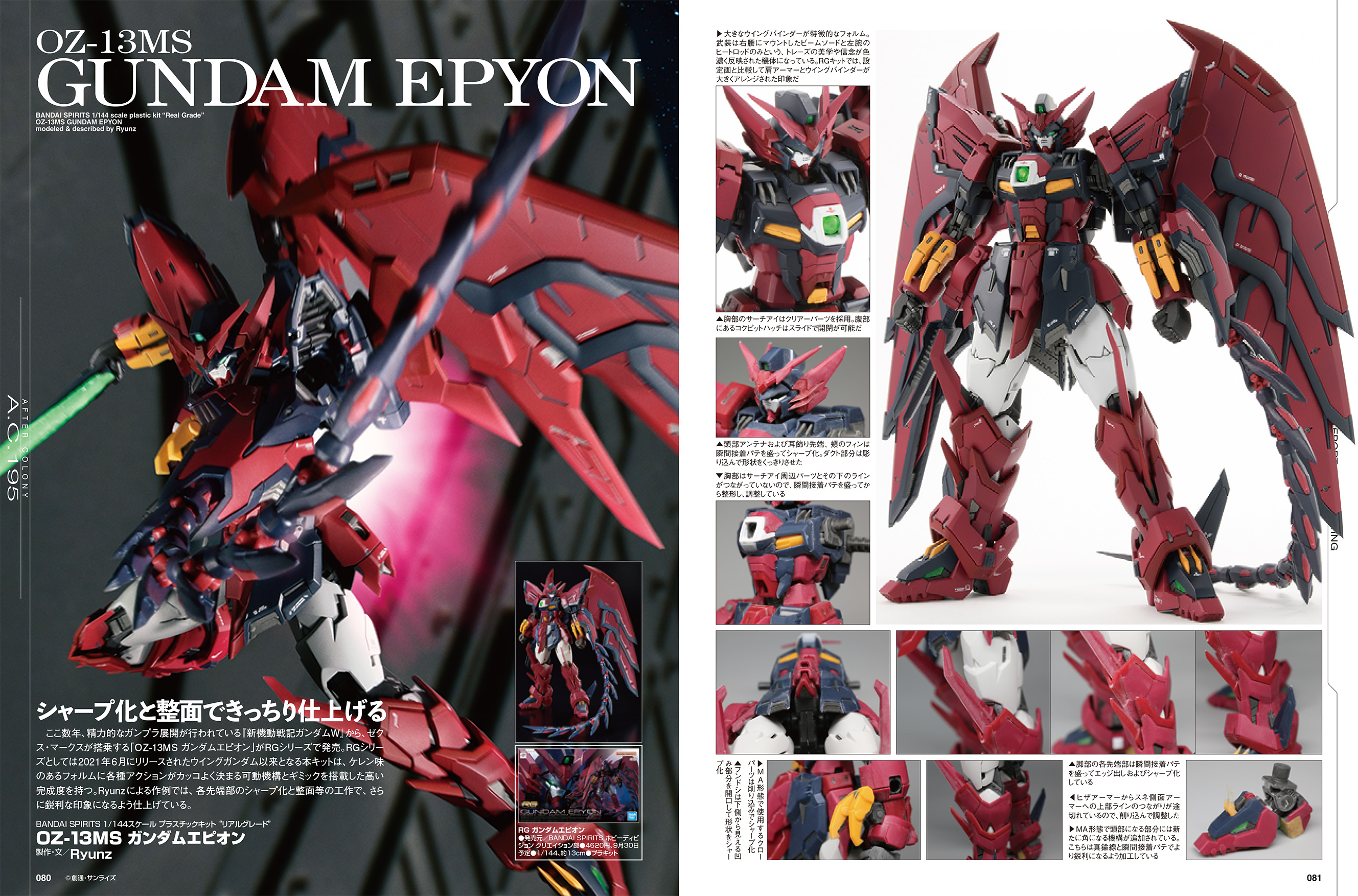ガンプラからは、RGシリーズの最新キット「RG 1/144 ガンダムエピオン」の作例をご紹介!また、『GODZ ORDER』の「神翼魔戦騎士 メグミ・アスモデウス」や、『半魚人の逆襲』の「半魚人ギルマン」など、バラエティに富んだ作例も掲載しております!