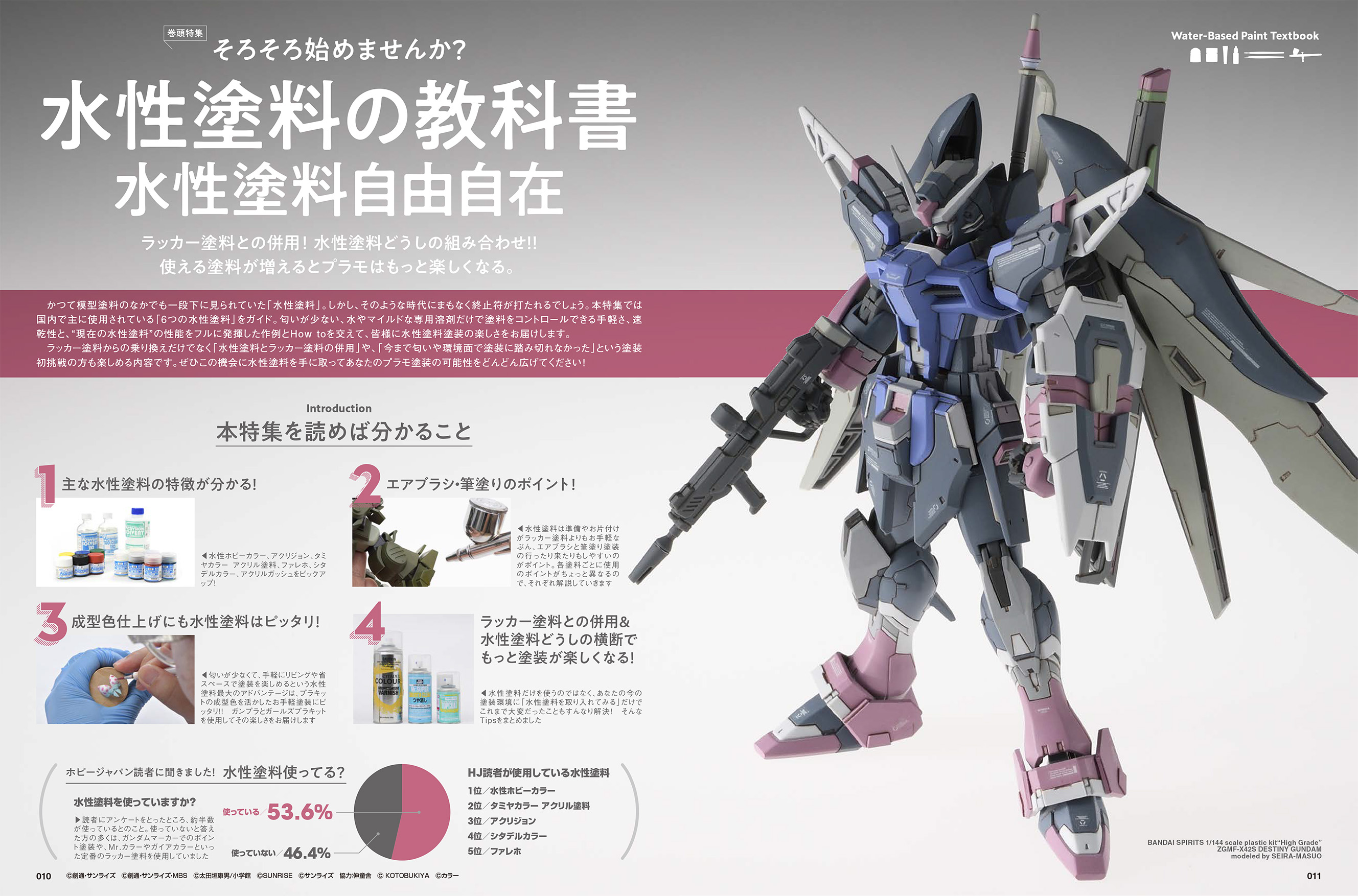 国内で主に使用されている「6つの水性塗料」を完全ガイドしつつ、水性塗料の性能をフルに発揮した作例とHow toを交えて、皆様に水性塗料塗装の楽しさをお届けします。