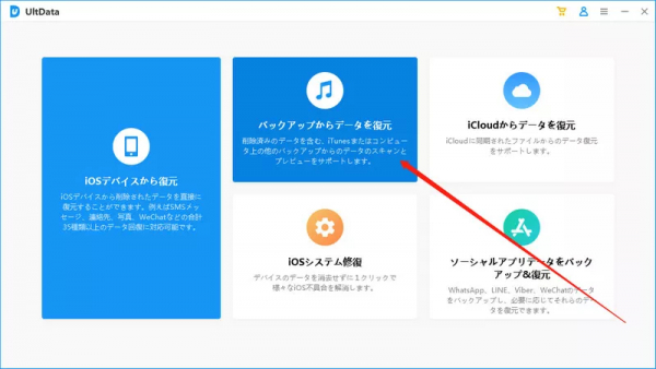 手順1:UltDataを立ち上げ、iTunesバックアップ復元"を選択します。