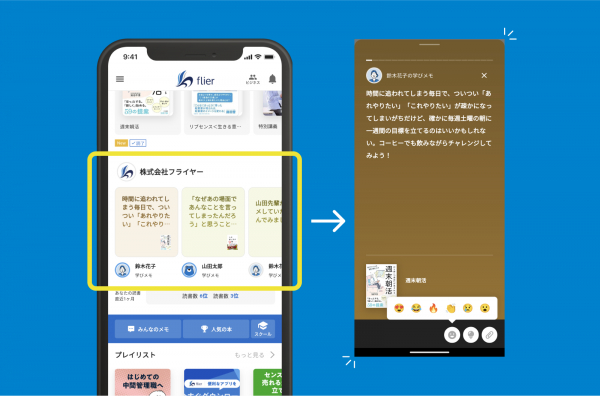 『flier business』の新機能を通じて、新たな学びの体験や同僚との学びのシェアをといった「ポジティブ」な「学び」の提供を目指してまいります。