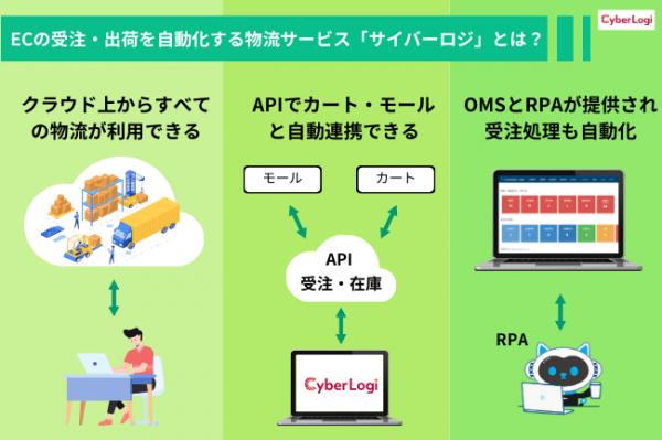 サイバーロジでは、物流のアウトソーシングのみならず、ストアAPI連携、高性能RPA・OMSを提供し、 Shopifyの受注管理を含めた物流業務全般を自動化して貴社のEC事業の加速を支援します!