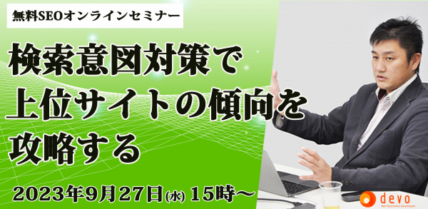 SEO対策サービスの開発・販売を行っている株式会社ディーボ(札幌市、代表取締役社長:藤沢 竜志、以下:ディーボ)は、2023年9月27日(水)15時からSEO対策セミナーを開催します。