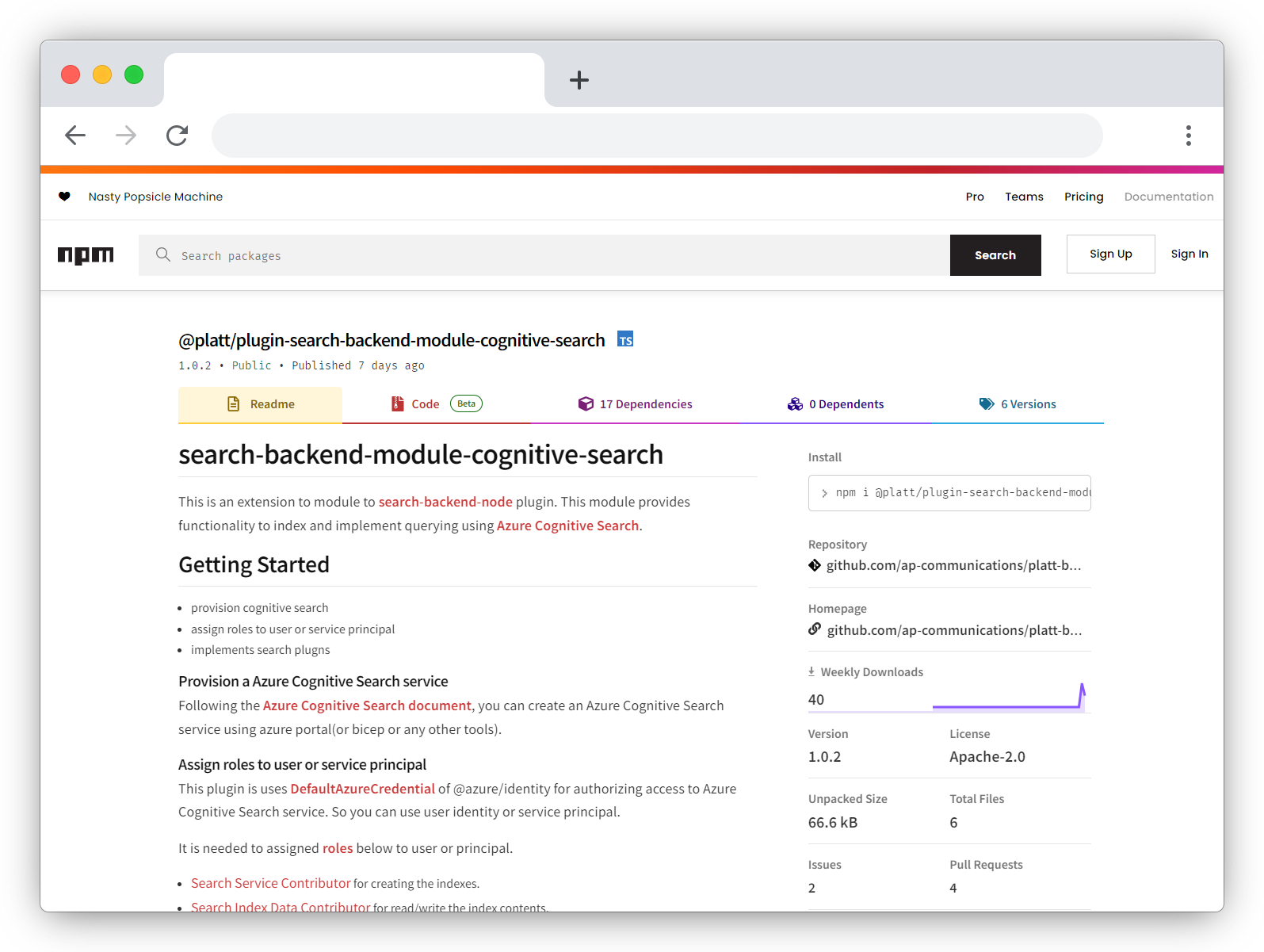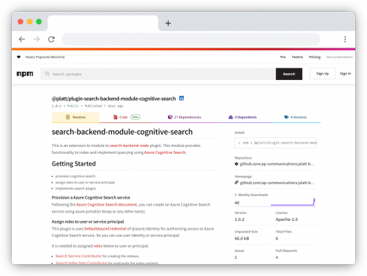 https://www.npmjs.com/package/@platt/plugin-search-backend-module-cognitive-search