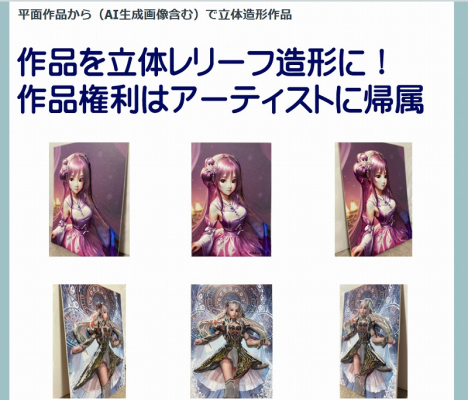 するサービスを開始した。完成品は守秘義務で制作を行うので、アーティストのオリジナルとなります。