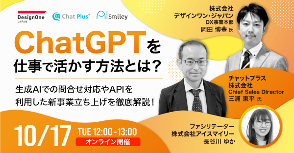 AIポータルメディアAIsmiley(東京都渋谷区、 代表取締役:板羽晃司)は、2023年10月17日(火)12時から「ChatGPTを仕事に活かす方法」をテーマにウェビナーを開催します。