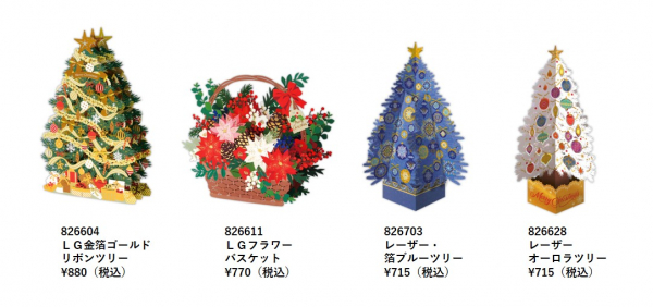 インテリアとして飾れるタイプの立体カードは、人気のツリー型を中心にバリエーション豊かに開発。可愛らしいおうち型など1点1点の存在感が際立つラインナップです。