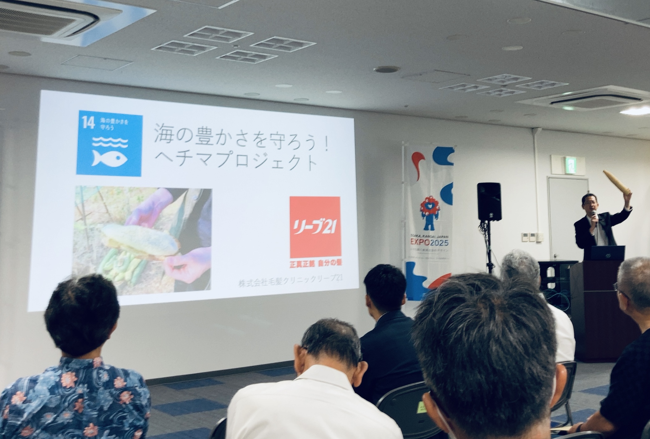 正真正銘自分の髪 リーブ21(本社:大阪市中央区、代表取締役社長:岡村勝正、以下「リーブ21」)は、2023年9月20日(水)公益財団法人2025日本国際博覧会協会、アジア太平洋トレードセンター株式会社が主催する「TEAM EXPO 2025 自然・環境セッション」において、SDGs14「海の豊かさを守ろう」を実践する「ヘチマプロジェクト」の活動実績を発表しました。(傍聴者100名)そこで、新たなつながりをつくり、共創するチームを作ることを目指しています。