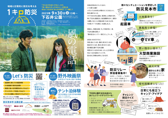 『やらされる防災ではなくゆるくつながって、やってみよう!』をテーマに、防災・減災の普及啓発イベントのほか、初となる『野外映画祭《風の電話》』、企業による『防災見本市』や『あおぞら教室』も同時開催。